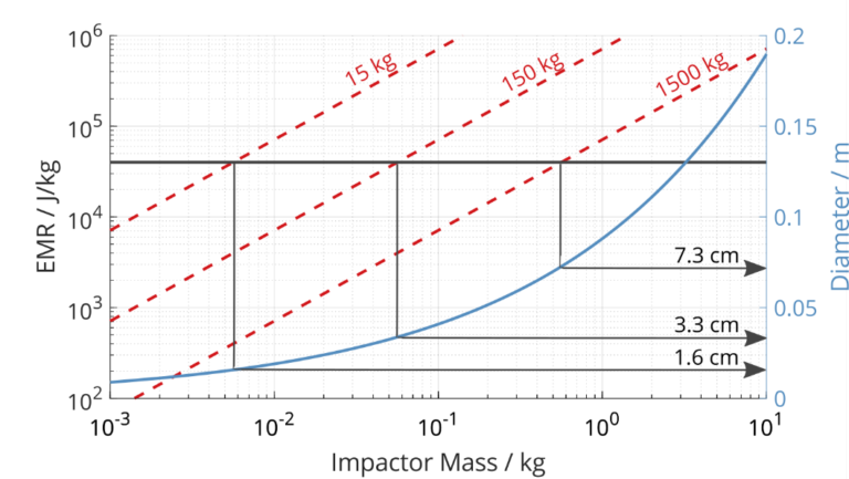 Every one of these objects can cause a critical mission failure or even the loss of the complete satellite. As a guideline, it is said that from an Energy-to-Mass ratio of 40 J/g4 an impact leads to a complete destruction of a satellite. Due to the high relative velocities on orbit (which in LEO can reach up to 15 km/s), small objects can already lead to these catastrophic collisions. Collisions between satellites and space debris objects happen frequently, although the large share of them have no critical impact on the satellite’s mission. A list of some past collision events is given in the table below. Creating an exhaustive list is nearly impossible, as many on-orbit anomalies cannot be fully re-solved. Even though the latest stated collision had a very low Energy-to-Mass-Ratio (EMR), it led to damaging the solar array of Sentinel-1A in an area with a diameter of 40 cm.